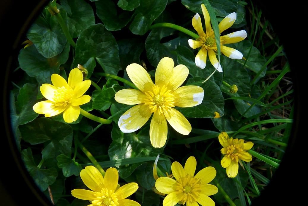 Along the coast, there were clumps of Lesser Celendine, Ranunculus ficaria, every metre or so. Almost each of these has 1 or more flowers with white in the petals. And, like in this photo, also in flowers which had not opened fully yet.